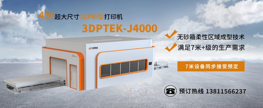 國產(chǎn)最新的大尺寸砂型 3D 機 3DPTEK-J4000 的出現(xiàn),是我國制造業(yè)不斷創(chuàng)新發(fā)展的成果。它以其先進的技術、優(yōu)越的性能、廣泛的應用領域和完善的售后服務,為鑄造業(yè)帶來了全新的發(fā)展機遇。這里有一篇文章詳細論述為什么要購買砂型3D打印機。