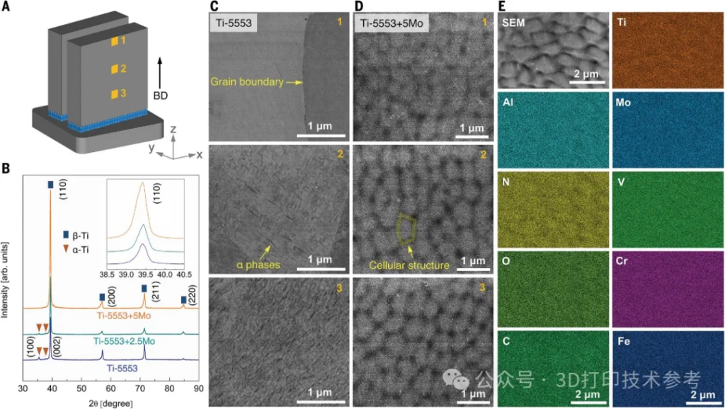 Yeni ara?t?rma büyük at?l?mlara yol a??yorTitanyum ala??mlar?nda k?r?lgan metaller aras? ?tektiklerin olu?umuna yol a?abilen β-?tektik stabilizat?r elementleri kullanmak yerine, ara?t?rmac?lar Ti-5553 (Ti-5Al-5Mo-5V-3Cr) i?in β-homokristalin grubundan [niyobyum (Nb), tantal (Ta) ve vanadyum (V) dahil] Mo'yu se?tiler. Yerinde ala??mlama i?lemi s?ras?nda molibden, erimi? havuza hassas bir ?ekilde ta??n?r ve her tarama katman? s?ras?nda kristal olu?umu ve inceltme i?in bir tohum ?ekirde?i g?revi g?rür. mo katk?s?, büyük sütunlu kristallerden ince e? eksenli ve dar sütunlu yap?lara ge?i?i te?vik eder. mo ayr?ca istenen β faz?n? stabilize eder ve termal d?ngü s?ras?nda faz heterojenli?inin olu?umunu engeller.