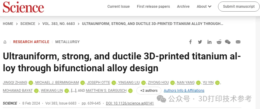 (bir yerden) gelmekQueensland üniversitesi, Avustralya(Jingqi Zhang ve di?erleri,)Chongqing üniversitesi(Ziyong Hou, Xiaoxu Huang),Danimarka Teknik üniversitesiOrtak ekip, "?ki i?levli ala??m tasar?m? yoluyla ultra düzgün, gü?lü ve sünek 3D bask?l? titanyum ala??m?" ba?l?kl? bir makale yay?nlad?. ?ki i?levli ala??m tasar?m? yoluyla ultra düzgün, gü?lü ve sünek 3D bask?l? titanyum ala??m?".3D bask? ile haz?rlanan titanyum ala??m?na ula??ld?Akma mukavemeti 926 MPa ve süneklik 261 TP3T ile mukavemet ve süneklik dengesi sa?lanm??t?r.